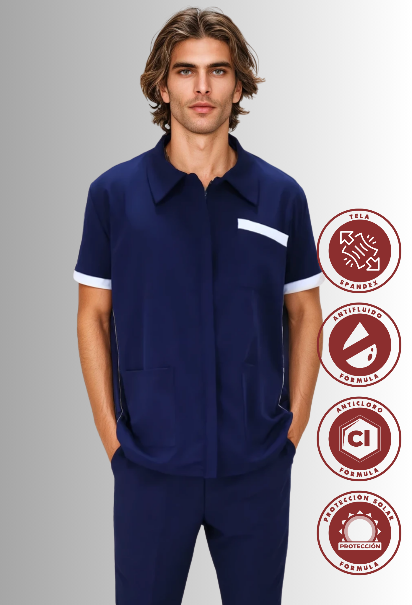 Ideal para servicio de limpieza, doméstico y más, este chaquetín destaca por su diseño moderno de Tela Spandex, Anti Fluido, Cloro Resistente y Protección Solar es perfecto para el trabajo diario, combinando funcionalidad y estilo en una prenda ligera y versátil.
