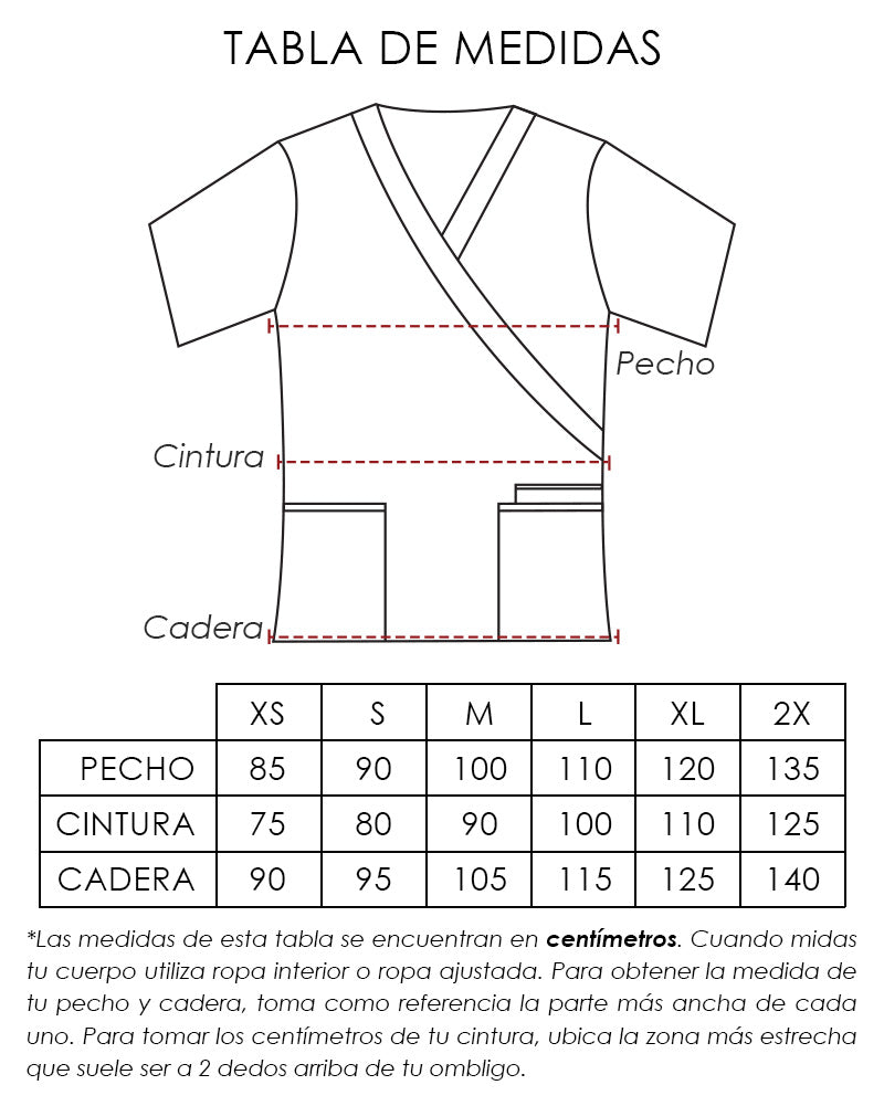 Nota: Antes de elegir tu prenda, te recomendamos verificar la tabla de medidas específica que se encuentra en la página de cada producto.